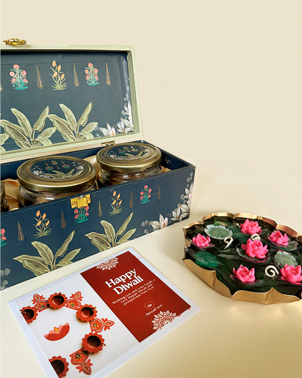 Sweeten your celebrations with the Mithaas & Munch Hamper, featuring 3 jars of festive delights – masala dry fruits, authentic besan laddoos, and melt-in-mouth soan papdi. A perfect Diwali gift box that blends health, sweetness, and tradition.